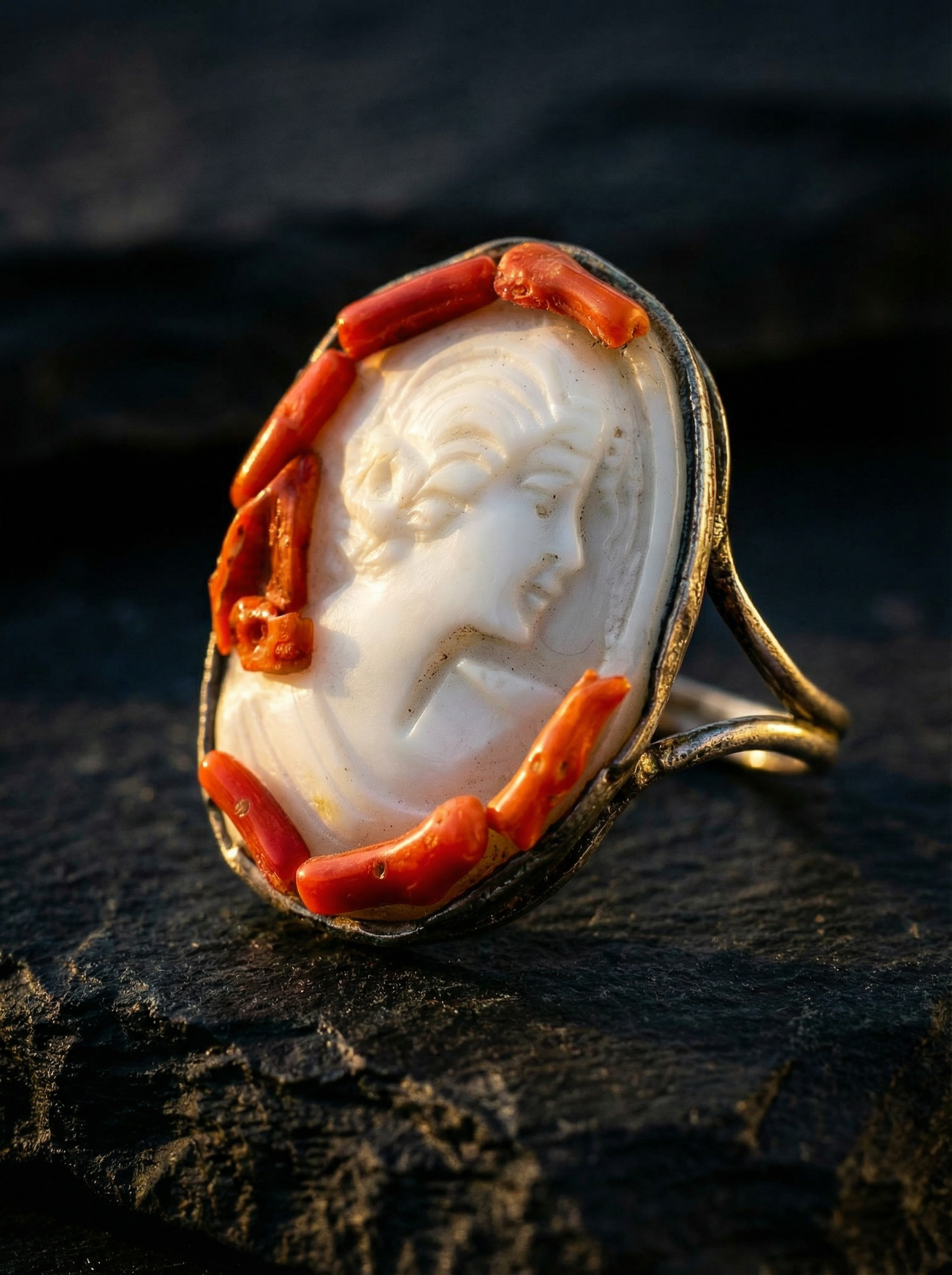 Il nostro anello cammeo e corallo è un gioiello che parla il linguaggio della storia e della bellezza. È un omaggio all’arte senza tempo dell’incisione e all’anima più vibrante del nostro mare, pensato per la donna che ama circondarsi di pezzi unici e carichi di significato.