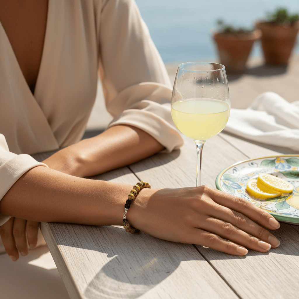 Realizzato con pietre naturali di alta qualità, alterna la superficie screziata dell’Agata Maculata giallo/nera, che rende ogni pezzo assolutamente esclusivo, alla profondità liscia e decisa dell’Onice Nero. Questo contrasto crea un gioiello affascinante e resistente, ideale per essere indossato in qualsiasi occasione. Confortevole per tutto il giorno, è un accessorio che non vorrai più togliere.