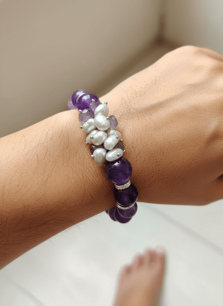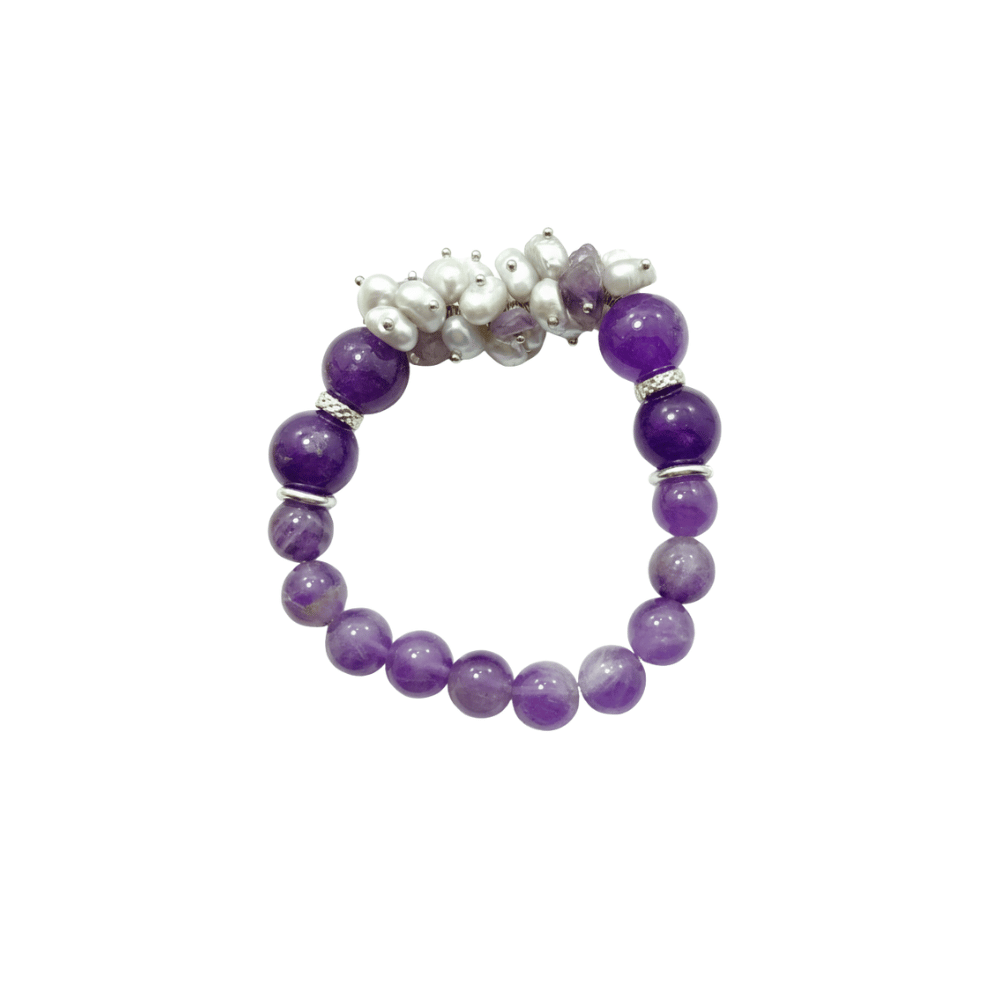 Ispirato ai gioielli delle case reali, dove l’ametista è da sempre simbolo di potere e spiritualità, nasce questo magnifico bracciale ametista e perle. È un accessorio importante, opulento, pensato per la donna che ama sentirsi una principessa moderna, capace di unire forza e grazia in un unico gesto.