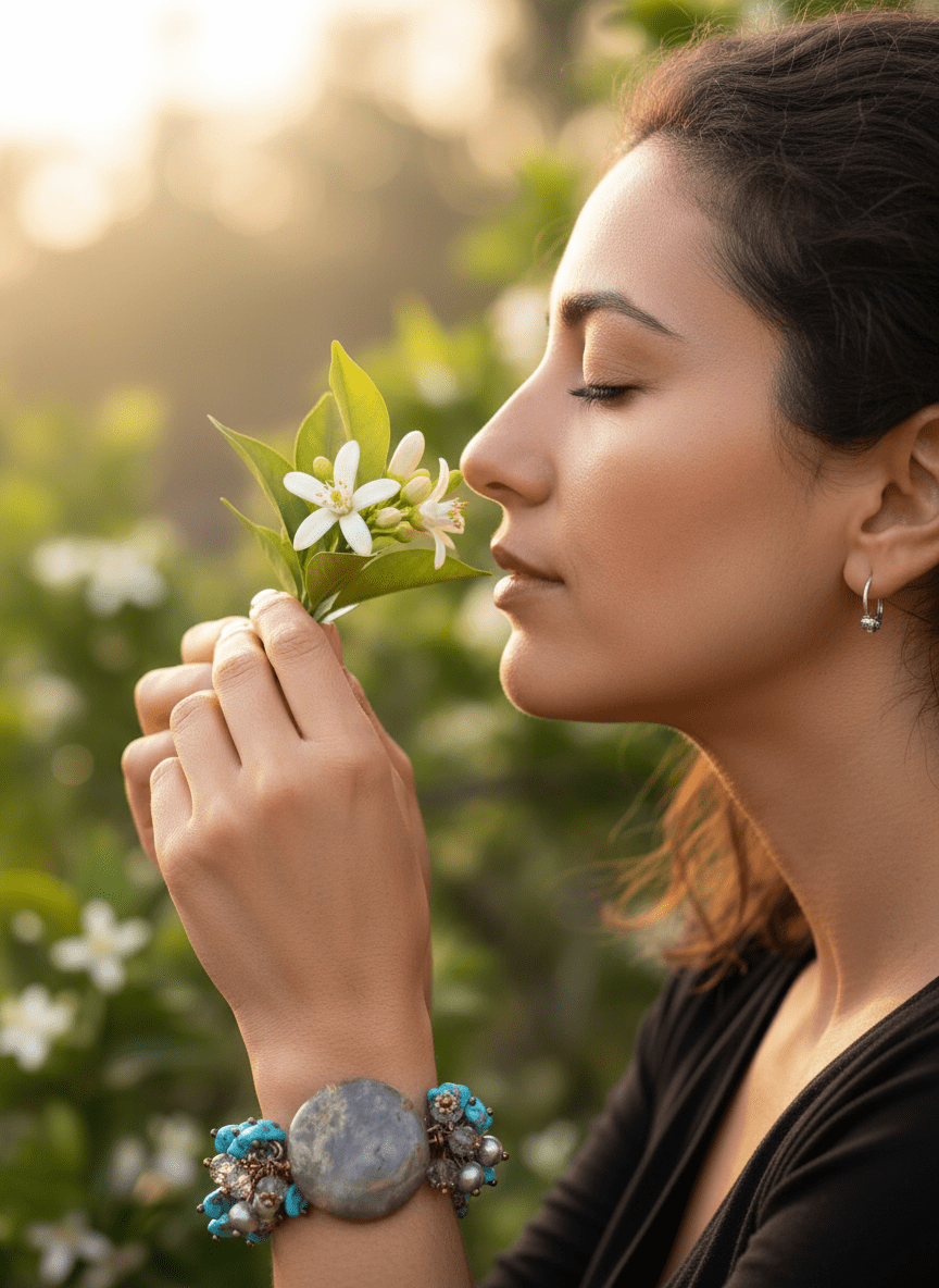 Questo bracciale turchese e pietra naturale è un racconto, un amuleto che parla di rive nascoste dove l’acqua cristallina incontra rocce millenarie. È un gioiello scultoreo, opulento e ricco di dettagli, pensato per vestire il polso con un’eleganza audace e indimenticabile, ispirata a una dea del mare.