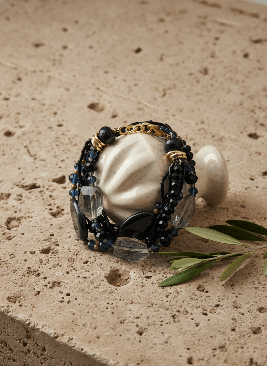 Bracciale Multifilo da Sera con Onice e Cristalli
