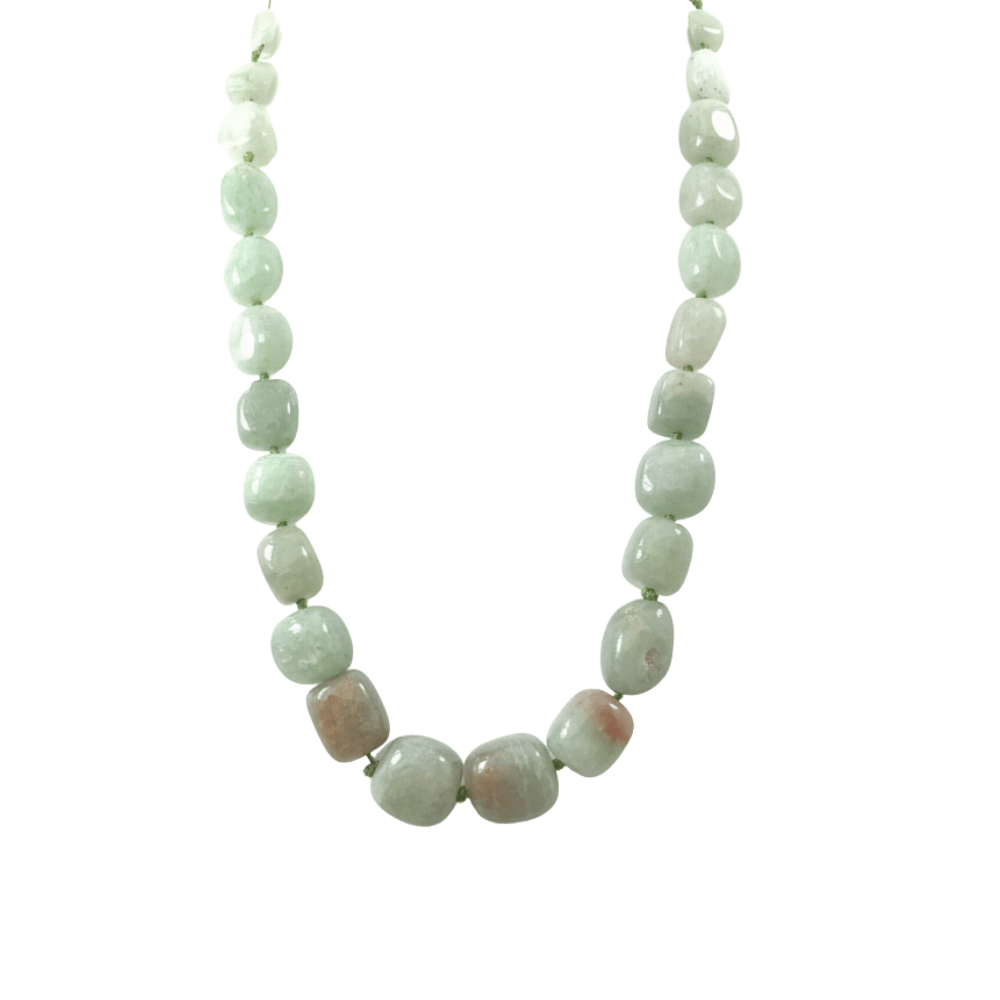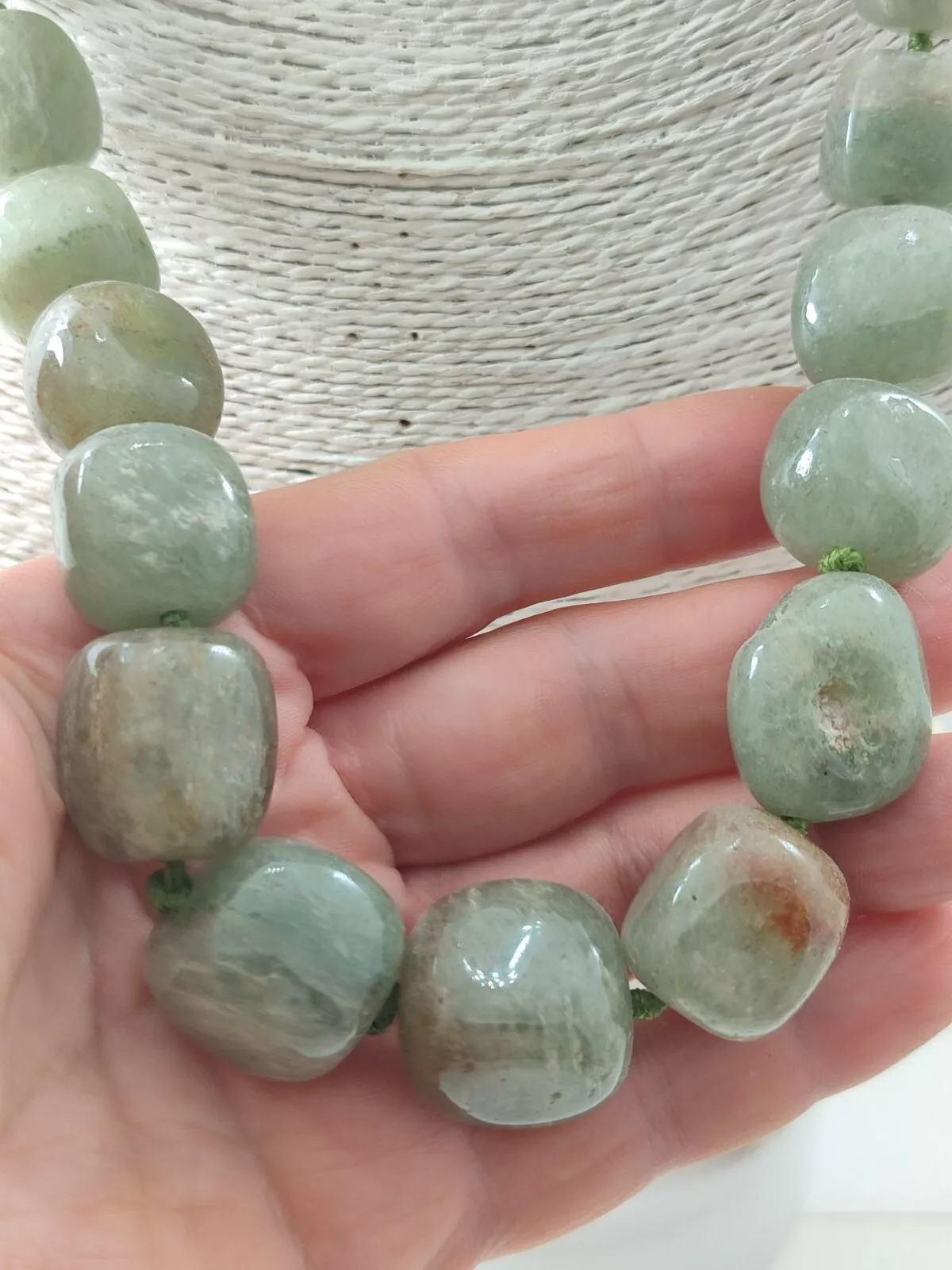 La collana è realizzata con grandi pietre di agata verde muschio, ognuna caratterizzata da sfumature e inclusioni uniche che la rendono un pezzo irripetibile. La forma irregolare delle pietre e la loro finitura lucida creano un effetto materico e organico di grande fascino. Semplice nel suo design ma potente nel suo impatto visivo, questa collana agata verde è un pezzo di natura da indossare.
