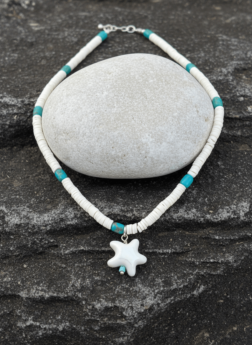Materiali: Onice Bianco, Turchese, Ciondolo Stella in Ceramica.