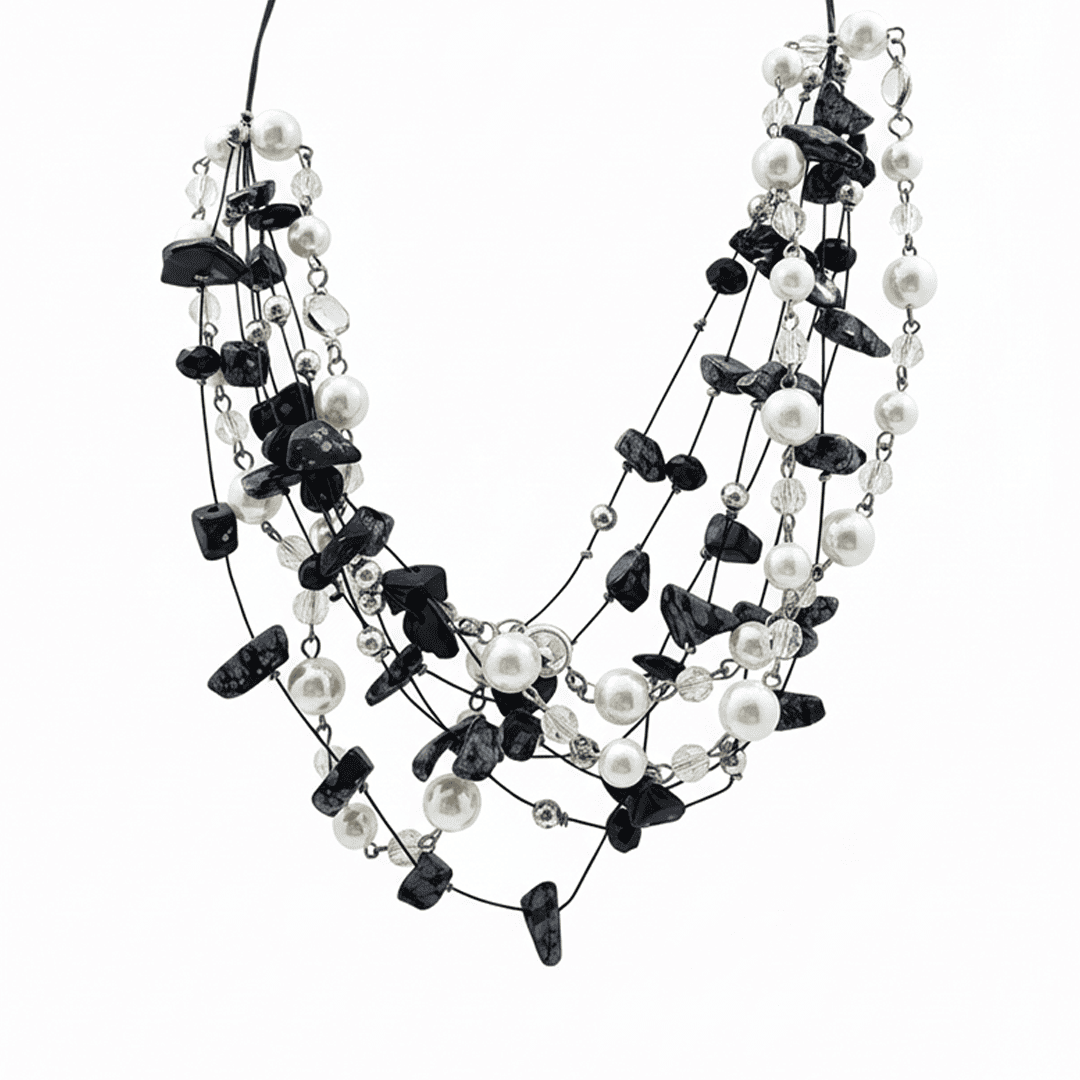 Collana Multifilo con Perle e Cristalli