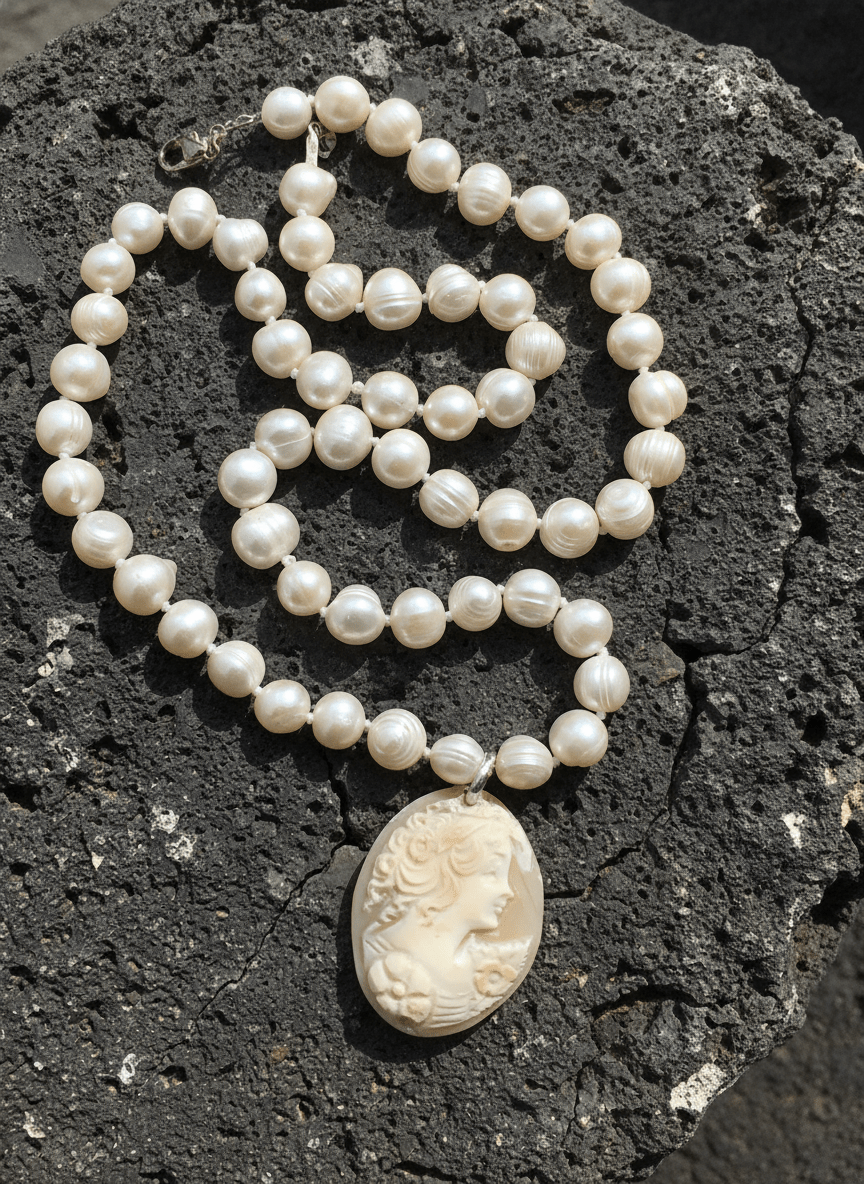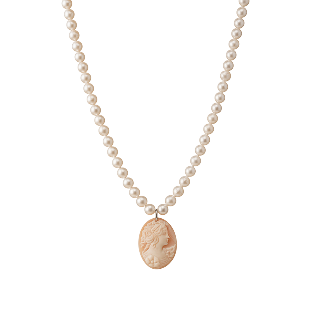 Un gioiello che incarna l’eleganza classica e la grande tradizione artigianale. Questa collana perle e cammeo è un pezzo importante e senza tempo, perfetto per la donna che ama circondarsi di bellezza e storia.