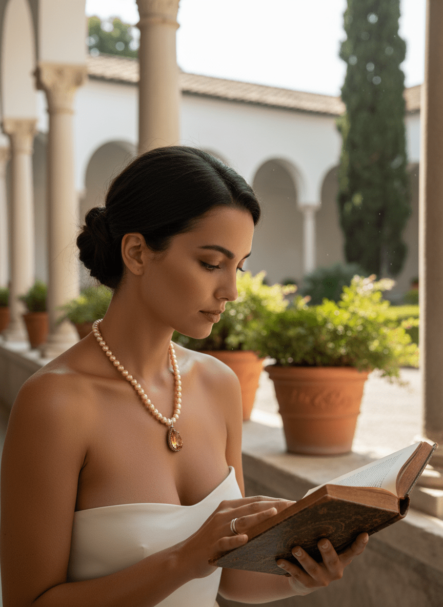 Questa collana perle gialle e cristallo è un’ode alla luce calda e dorata del sole mediterraneo, un gioiello pensato per illuminare il décolleté con un’eleganza solare e senza tempo. L’ispirazione arriva dai colori vibranti della costiera, dal giallo dei limoni al color ambra di un vino liquoroso gustato al tramonto.