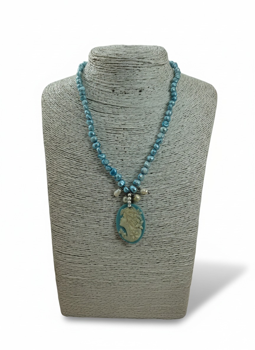 Collana Stile Positano con Cammeo Azzurro e Perle