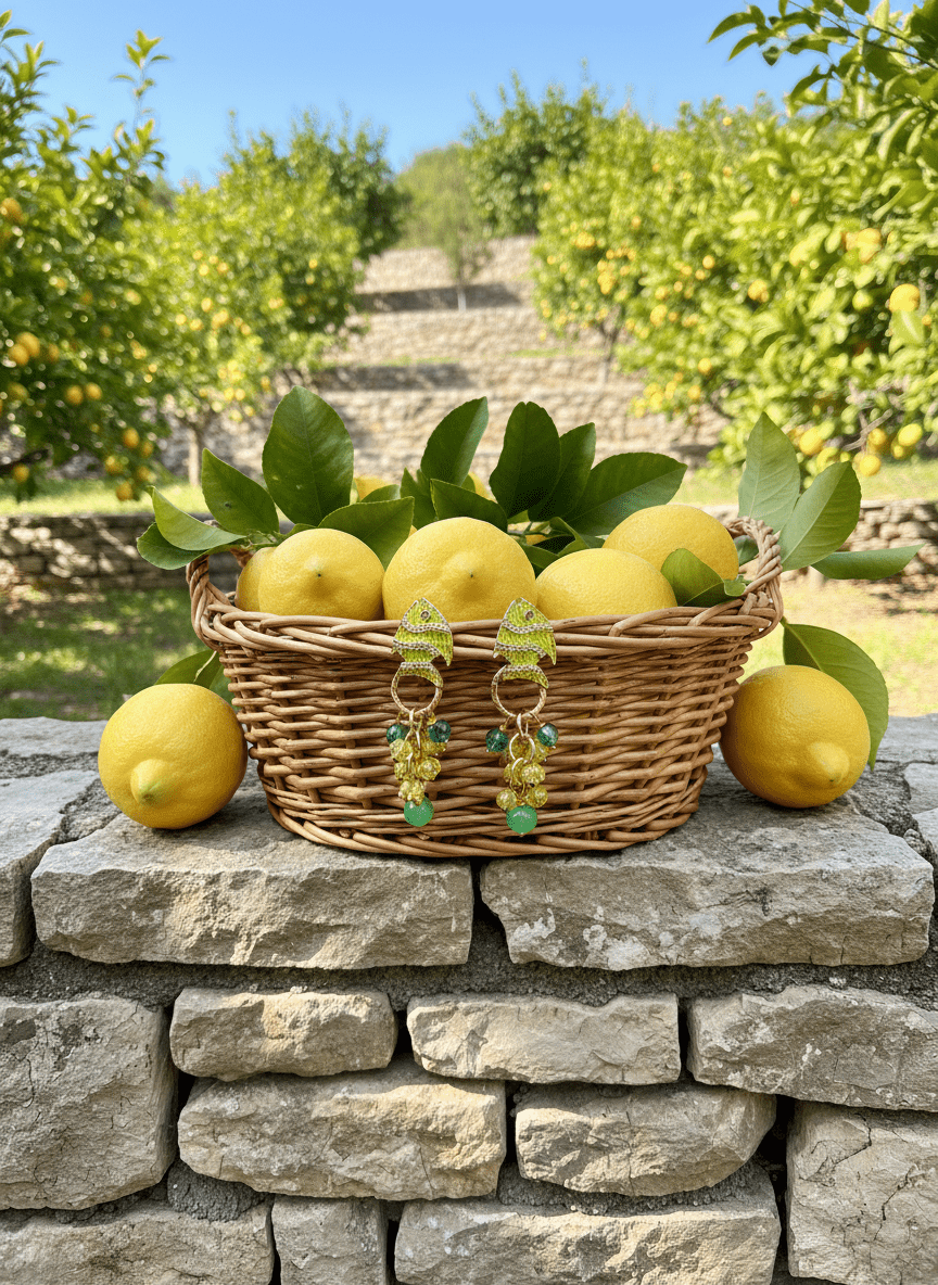 Questi orecchini a forma di pesce sono un gioiello che sa di sole, limoni e vacanze sulla costa. Sono un accessorio divertente e pieno di personalità, pensato per la donna che ama aggiungere un tocco di colore e originalità al proprio stile.
