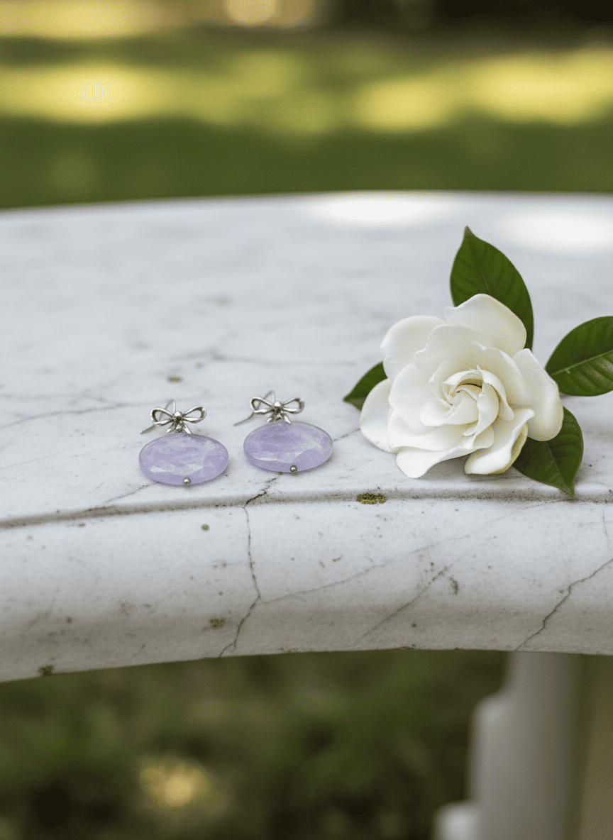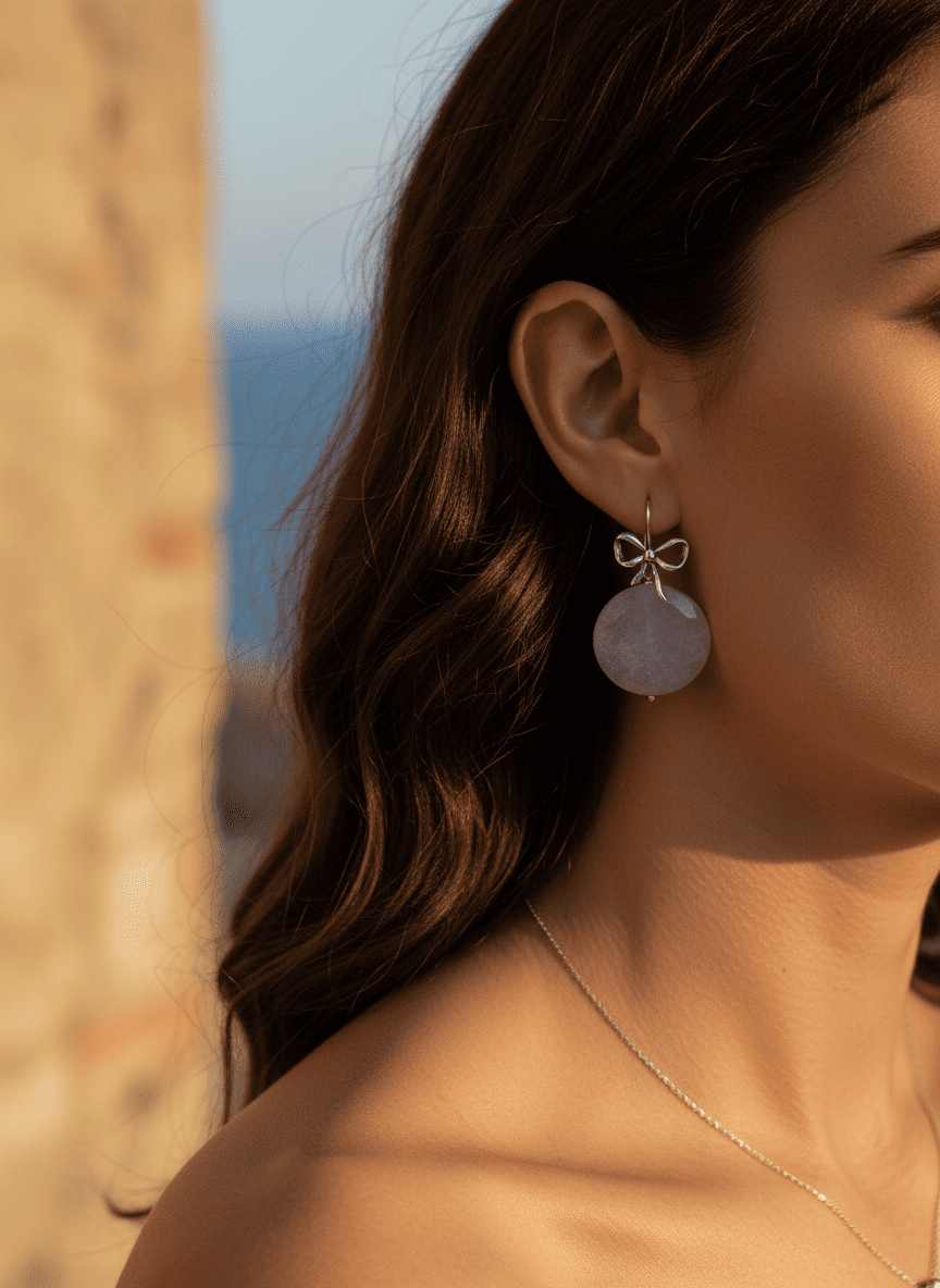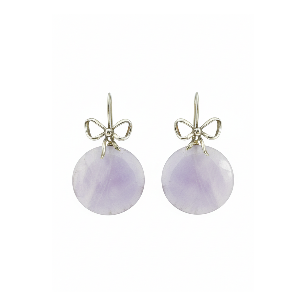 Un nodo d’amore e di luce. Questi orecchini ametista e argento combinano la grazia di un fiocco scintillante con l’energia spirituale di una pietra naturale unica, creando un gioiello dal fascino romantico e senza tempo.