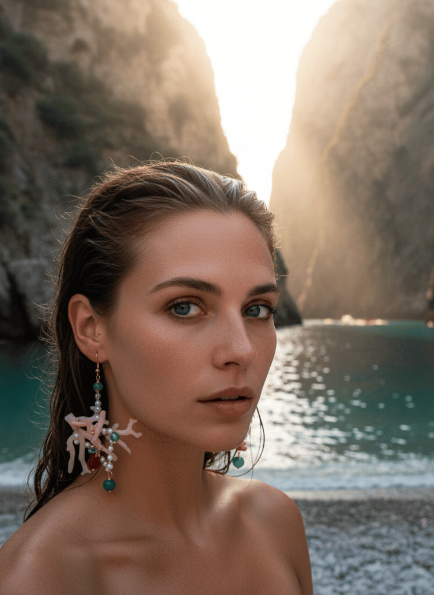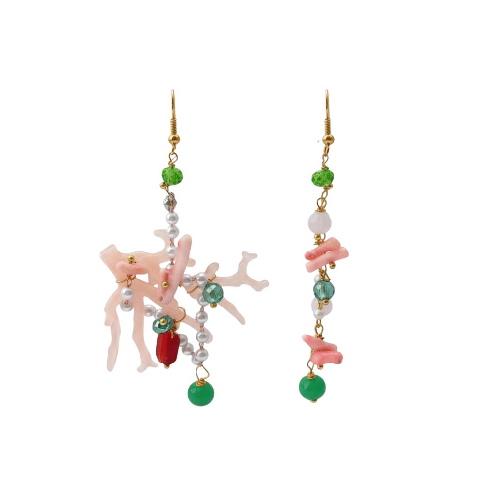 Questi orecchini asimmetrici con corallo sono un pezzo unico, una piccola scultura da indossare pensata per la donna che ama esprimere la propria individualità. Il design audace rompe le convenzioni, con due orecchini volutamente diversi che creano un equilibrio dinamico e sorprendente.