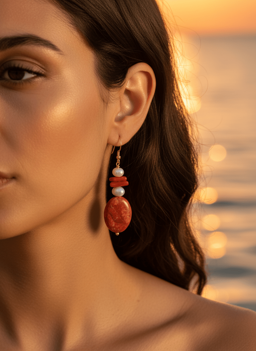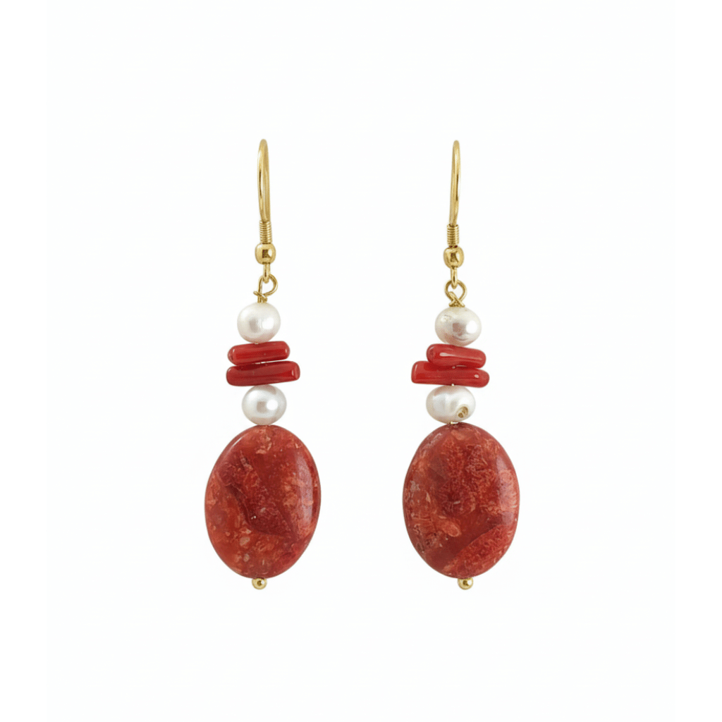 Le asimmetrie di ogni elemento non sono difetti, ma il sigillo della loro autenticità, ciò che rende ogni paio di orecchini un pezzo irripetibile. La monachella in argento dorato aggiunge un tocco di luce calda. Indossare questi orecchini corallo e perle significa portare con sé un frammento della magia del Mediterraneo.