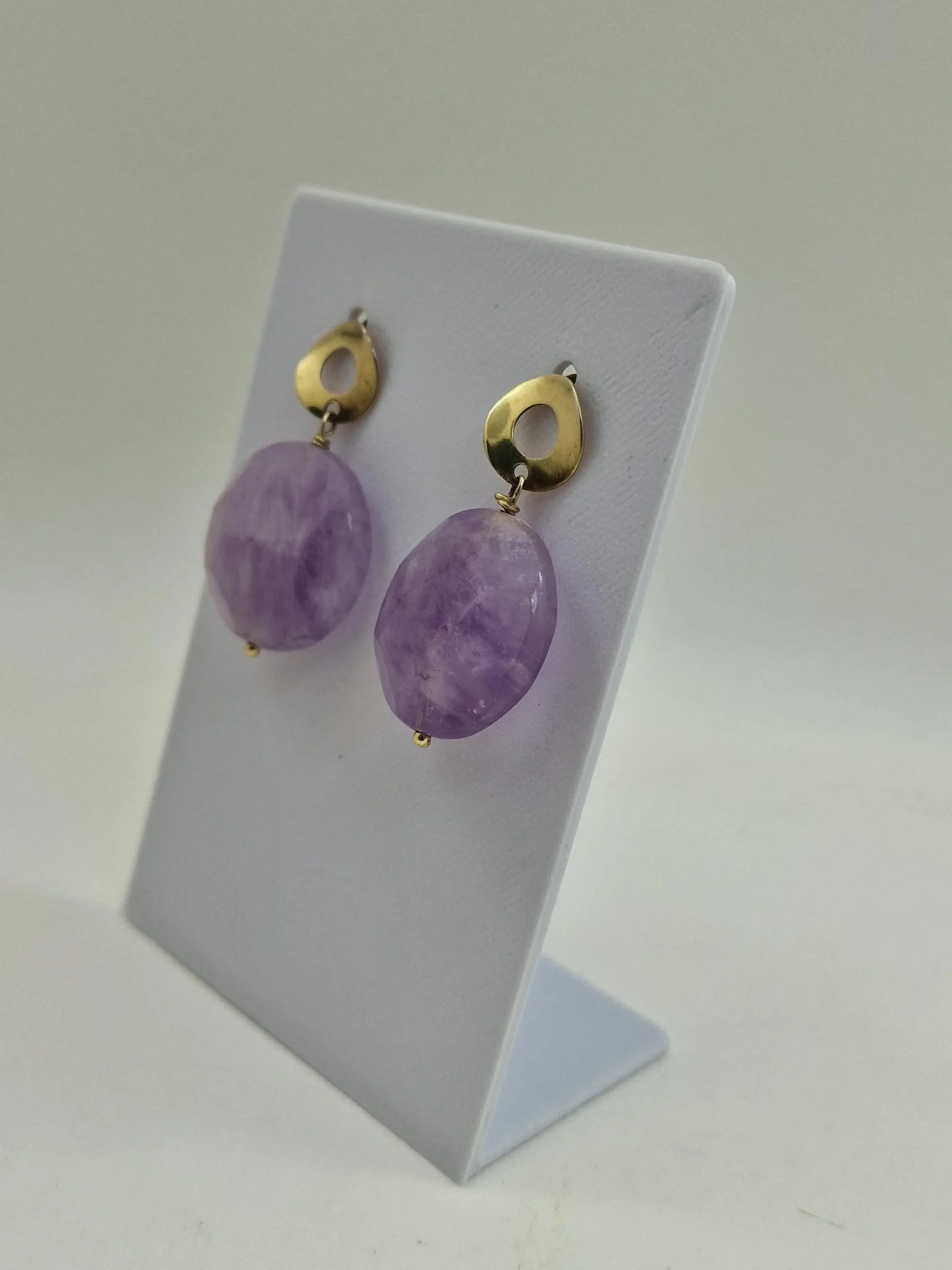 Indossa un frammento di cielo al tramonto con questi luminosi orecchini onice lavanda realizzati a mano. Le pietre naturali, con le loro delicate sfumature color lavanda, catturano la luce a ogni movimento grazie a una fine sfaccettatura, creando un punto luce elegante e raffinato. A differenza del classico onice nero, questa rara varietà di pietra affascina con i suoi toni viola, rendendo ogni pezzo davvero unico.