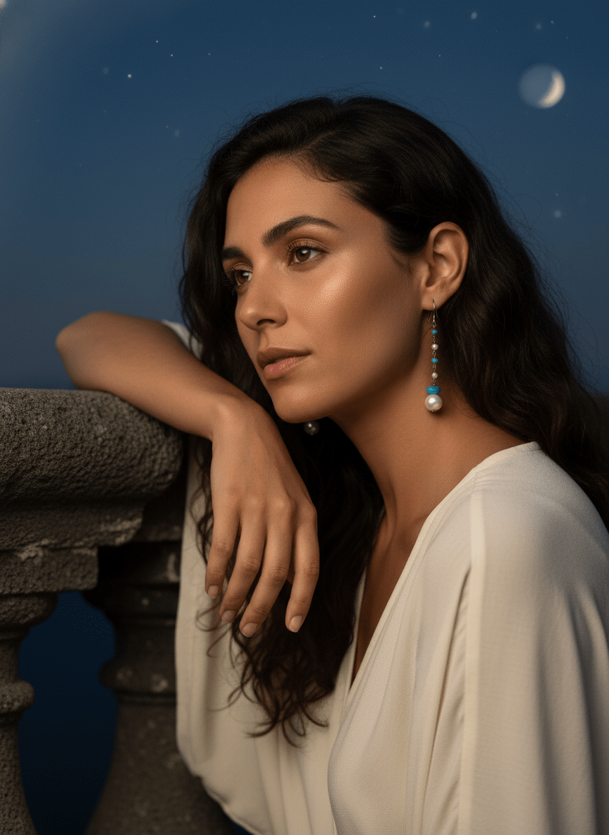 Questi orecchini lunghi turchese si distinguono per il loro design fine e lineare, che slancia la figura con un’eleganza discreta. Sono perfetti per chi ama i gioielli minimalisti ma non vuole rinunciare a un tocco di colore e movimento.