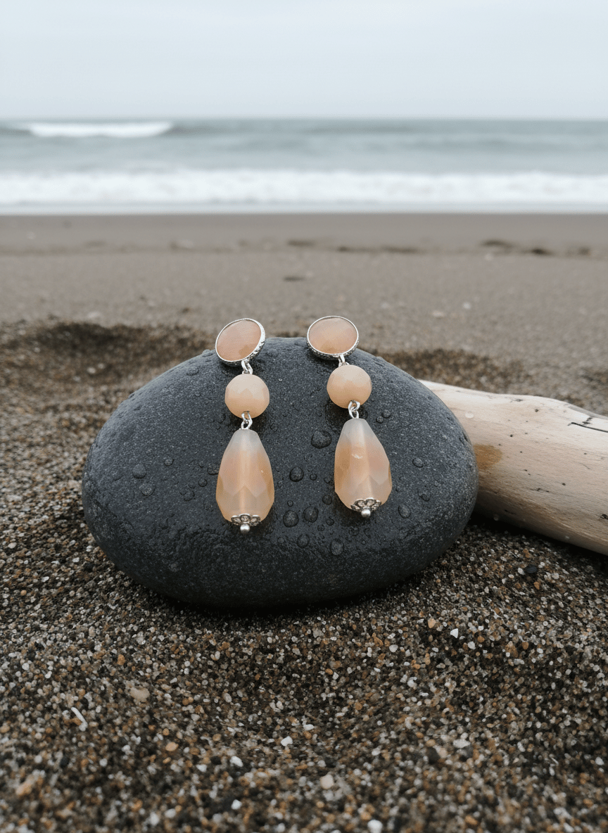 Questa composizione crea un movimento elegante e cattura la luce in modo sofisticato. I colori, che vanno dal beige all’arancio chiaro, sono caldi e incredibilmente facili da abbinare. Questi orecchini pendenti agata sono l’accessorio perfetto per chi cerca un’eleganza raffinata e femminile.