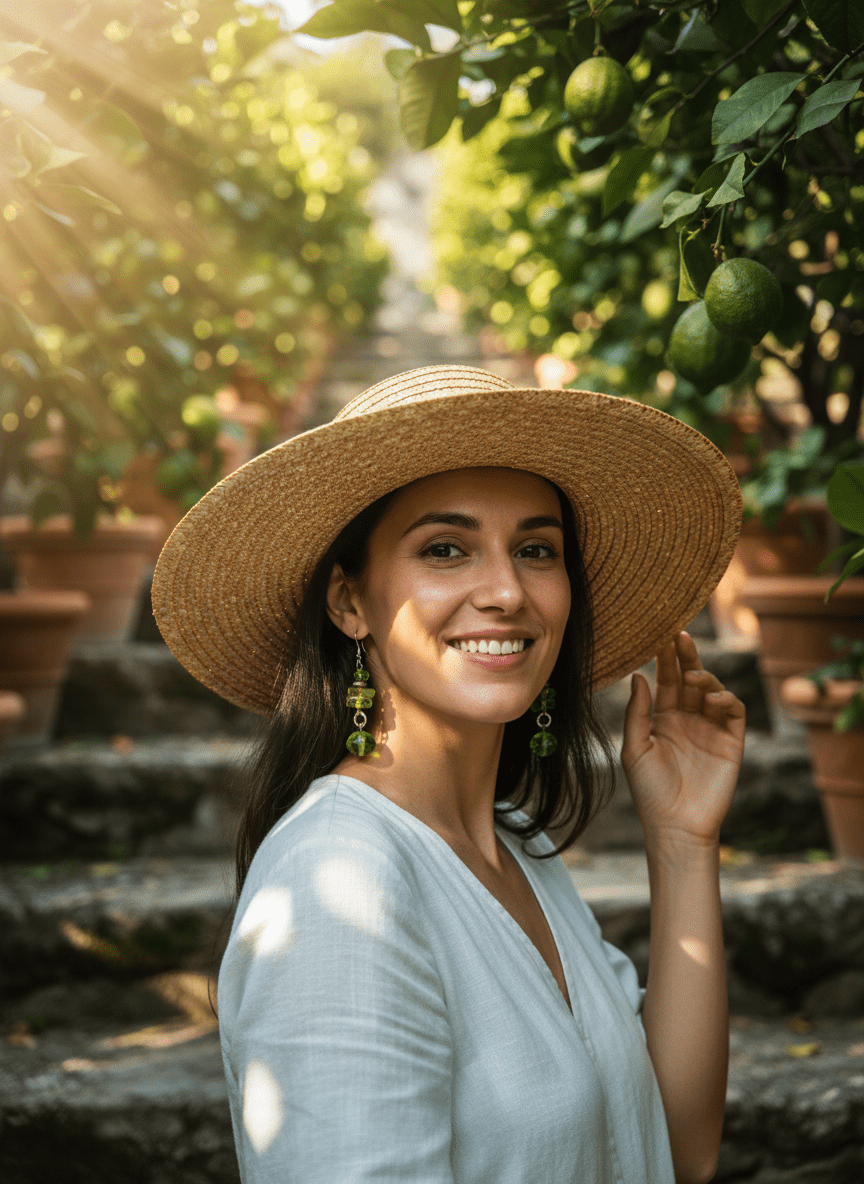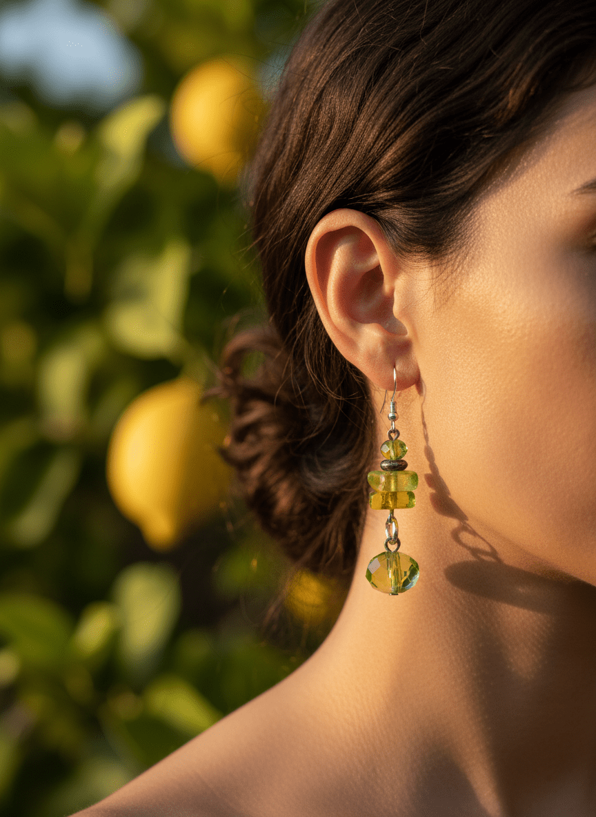 Questi orecchini pendenti verdi sono una sferzata di energia, un gioiello che cattura la freschezza di un cocktail estivo al tramonto. Pensati per la donna che ama aggiungere un tocco di colore vibrante al proprio stile, sono perfetti per illuminare un look da giorno o per una serata all’aperto.