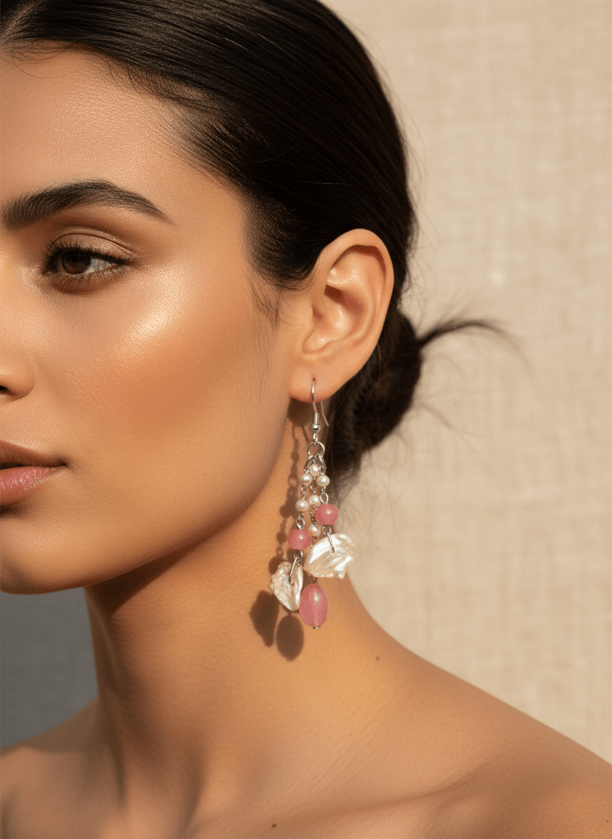 I nostri orecchini con perle e quarzo rosa sono un gioiello che celebra la femminilità e la delicatezza. Pensati per la donna che ama uno stile romantico e leggero, sono perfetti per aggiungere un tocco di grazia e colore a qualsiasi look.