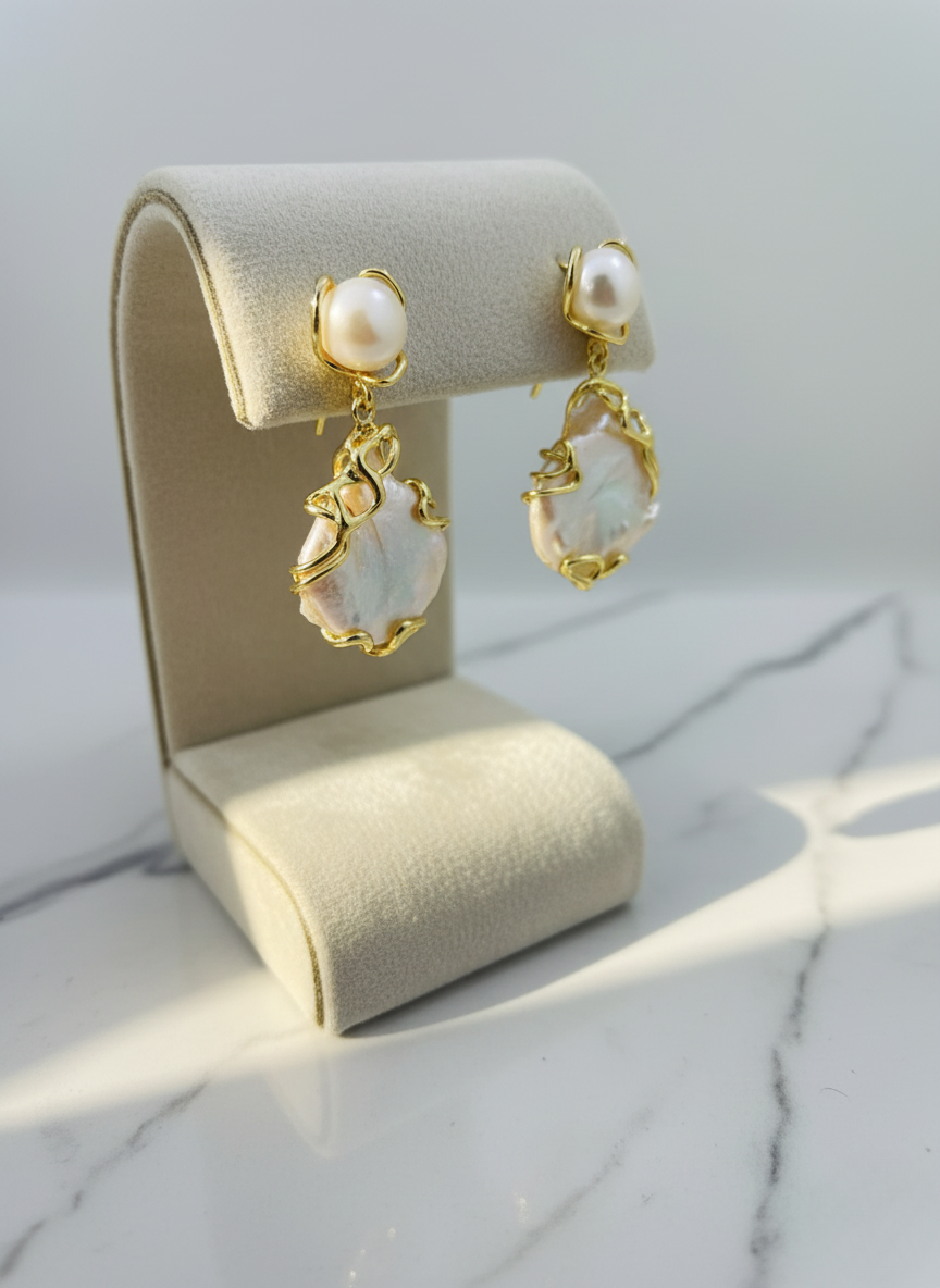 Orecchini Pendenti in Madreperla e Perle Scaramazze