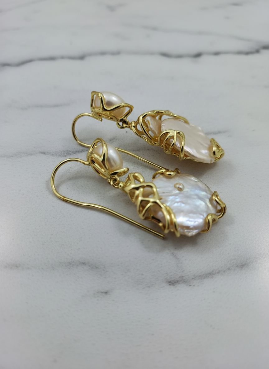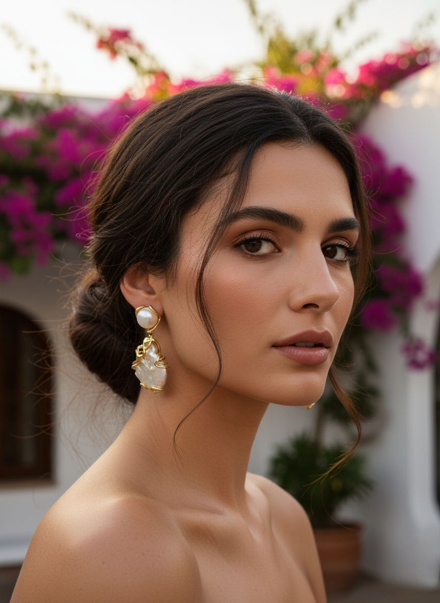 Questi orecchini con perle scaramazze sono un inno alla bellezza imperfetta e luminosa della natura. Pensati per la donna che ama un’eleganza non convenzionale, sono un accessorio sofisticato capace di illuminare il viso e impreziosire ogni look, da un tailleur da ufficio a un abito da cerimonia.