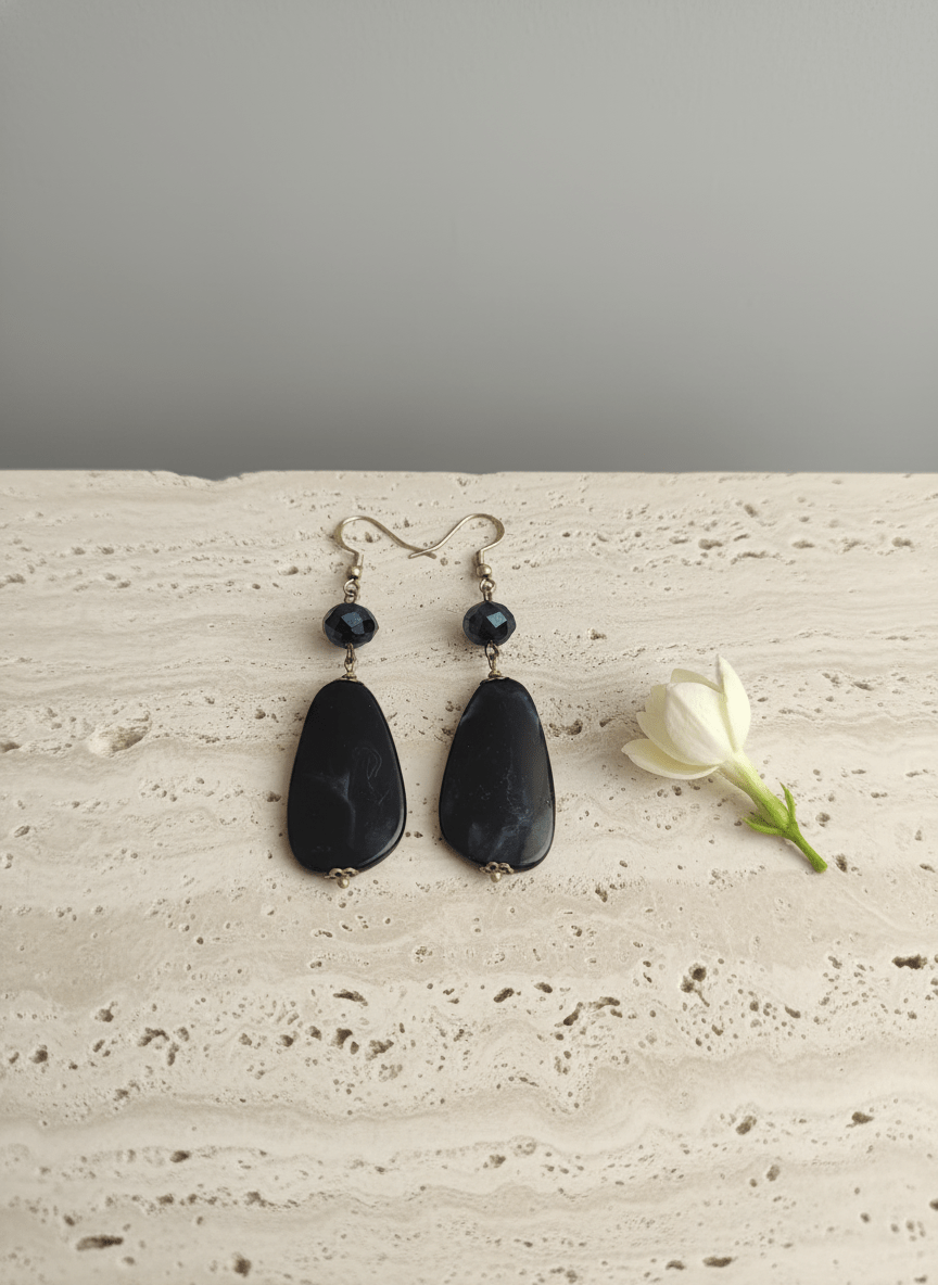 Questi orecchini resina nera sono la scelta ideale per chi cerca un accessorio di grande effetto ma estremamente leggero e comodo da indossare. Il design è dominato da una goccia pendente dalla forma irregolare e organica, la cui superficie è arricchita da venature che creano un sofisticato effetto marmo.