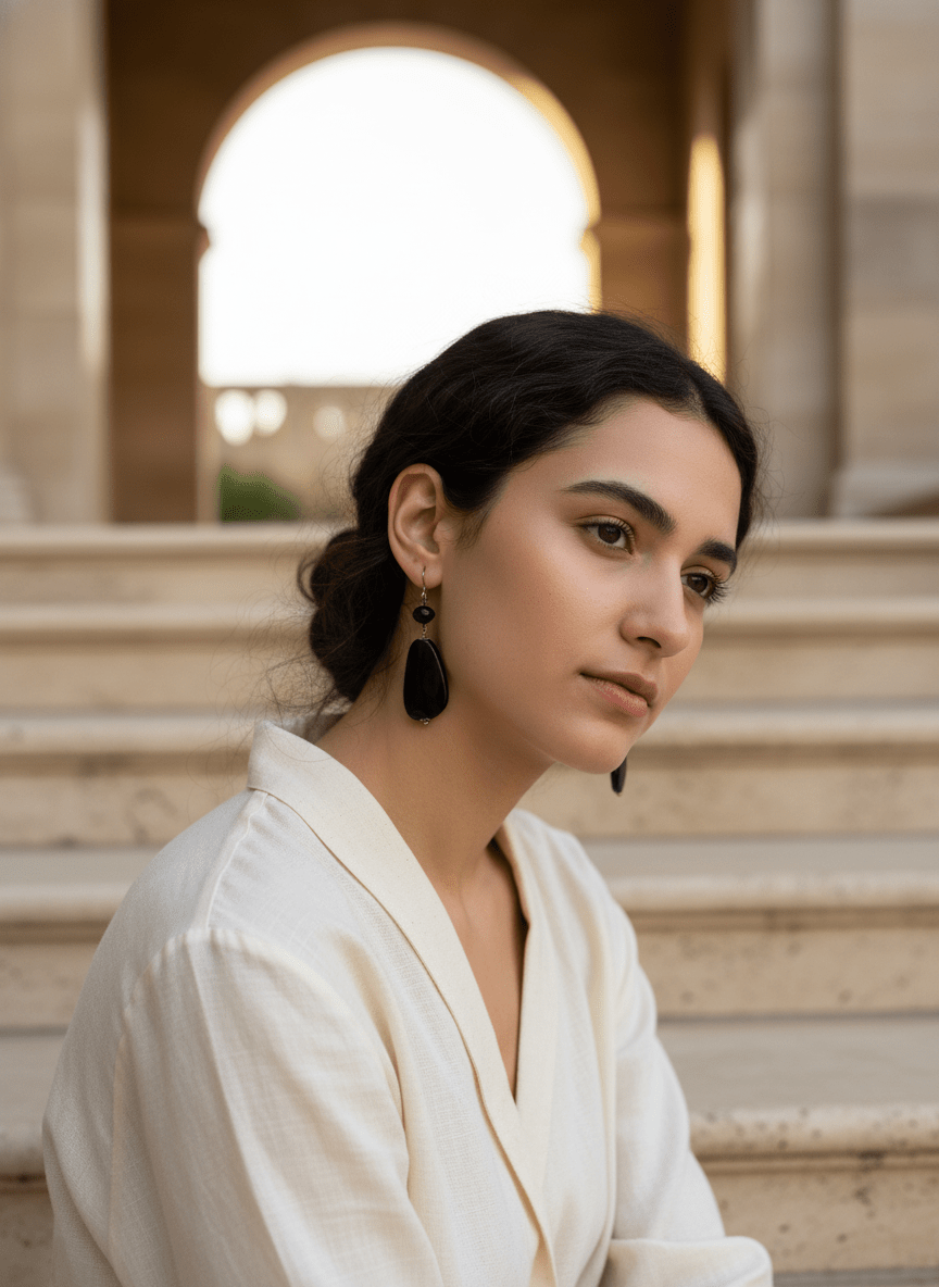 La goccia è sormontata da un cristallo nero sfaccettato che aggiunge un tocco di luce, mentre la monachella in argento garantisce la qualità del gioiello. Questi orecchini resina nera sono un accessorio versatile e chic, capace di completare con un tocco di classe sia un outfit casual che uno più elegante.