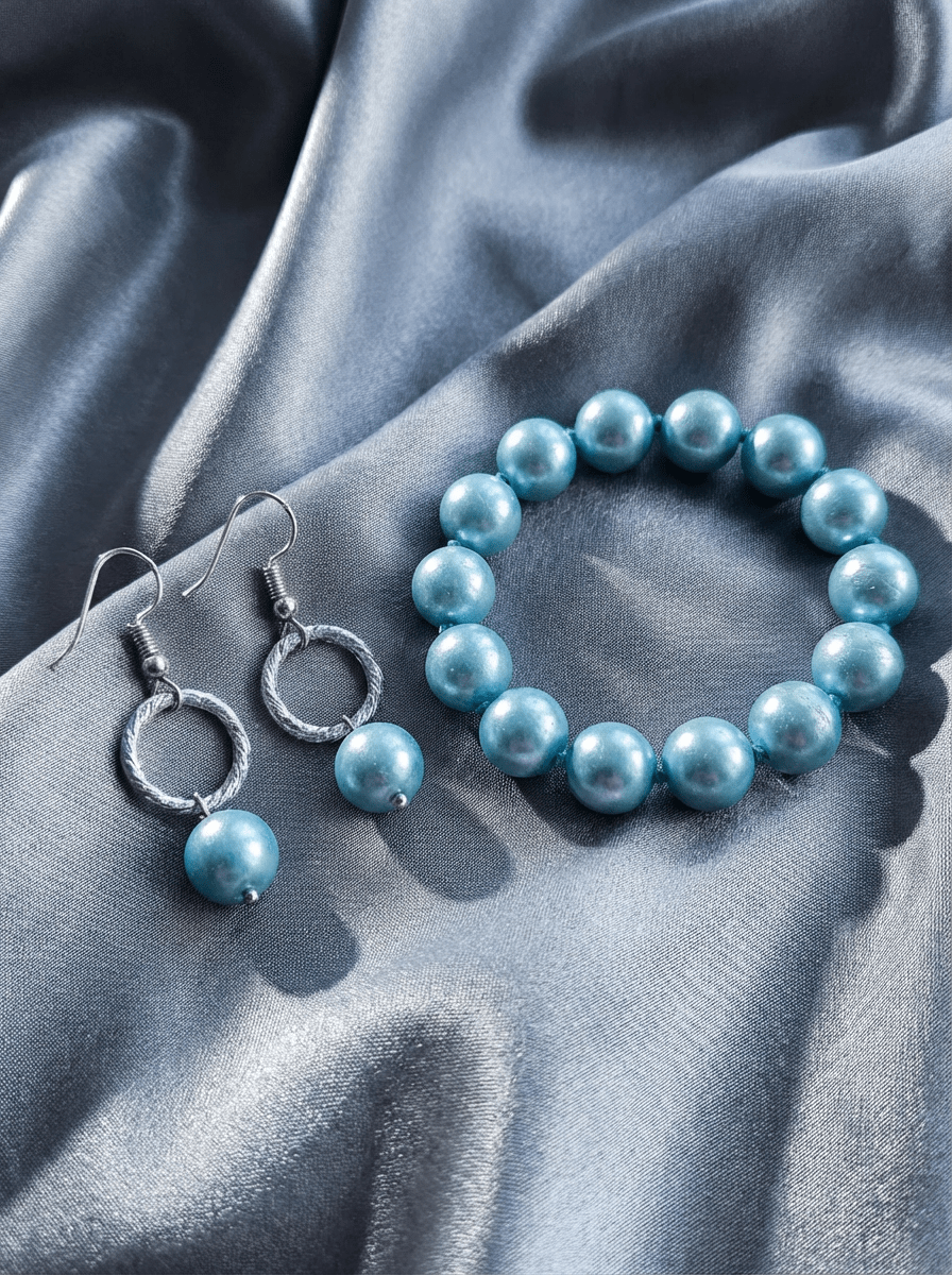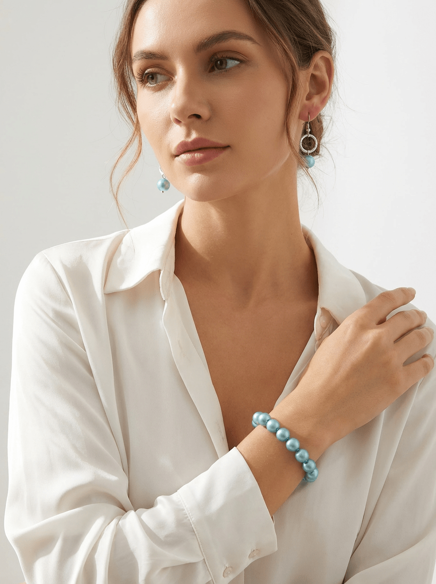 Il set include un bracciale morbido che alterna perle di diverse dimensioni e sfumature rosate/crema, e una coppia di orecchini a cerchio dorati con un pendente in perla barocca. Indossare questa parure perle naturali significa portare addosso la luce delicata della natura, perfetta sia per una giornata in ufficio che per una cerimonia.